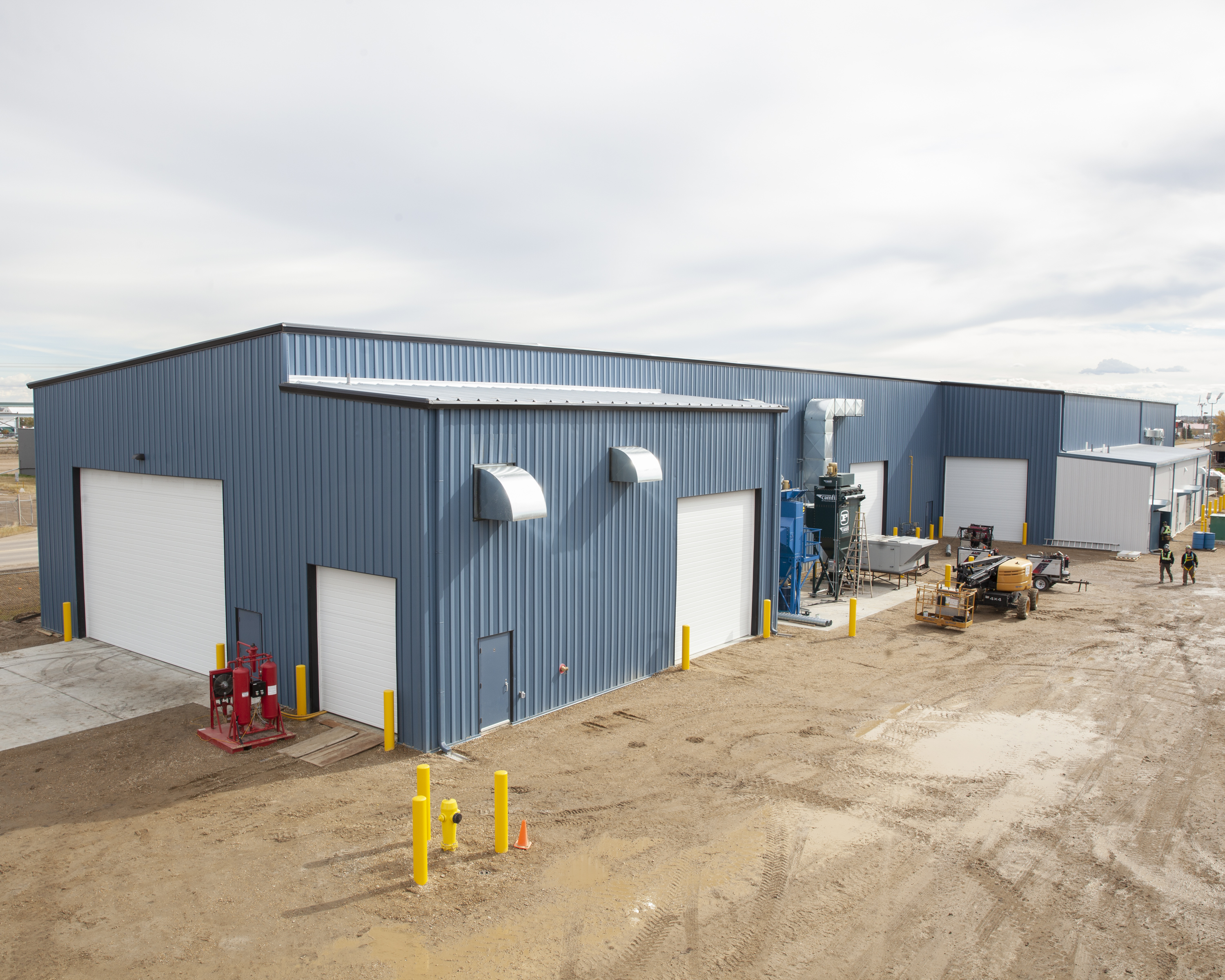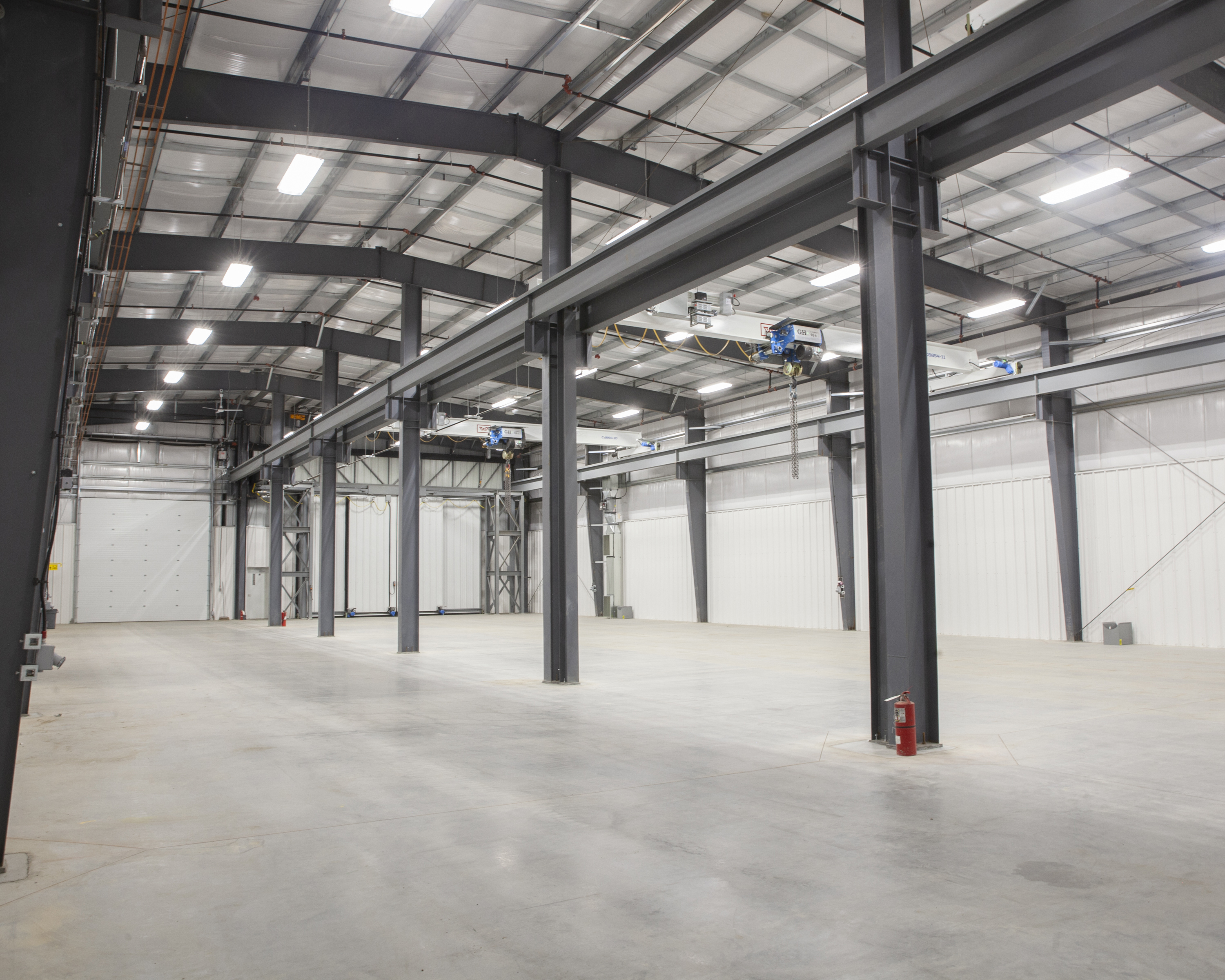 Pre-engineered metal building, concrete, reinforcing steel, overhead doors, 10 and 5 ton cranes, extensive mechanical requirements.