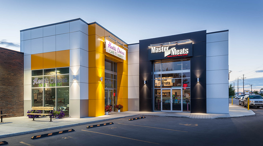 Conventional steel frame, concrete, reinforcing steel, steel stud infill, curtain wall, alucobond.