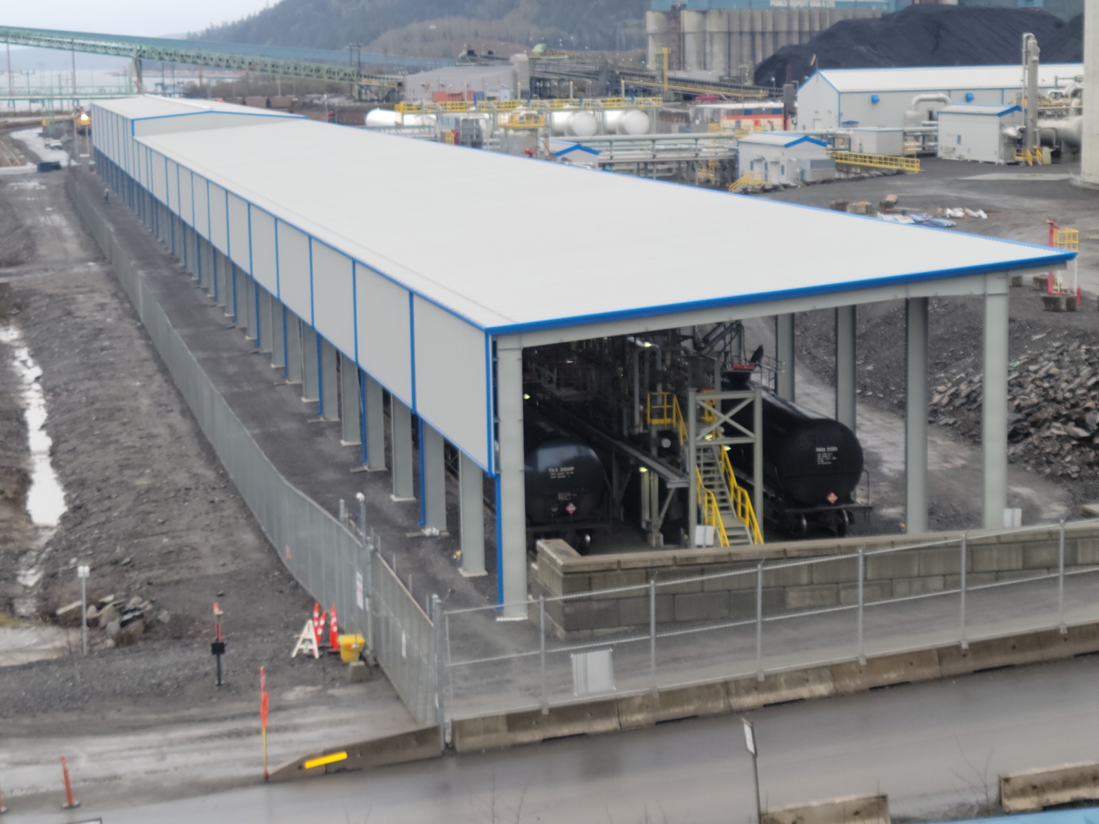 The supply and erection of the Rail Rack Roof took place amidst the continuous operation of both the plant and rail line at the Ridley Island Propane Export Terminal.